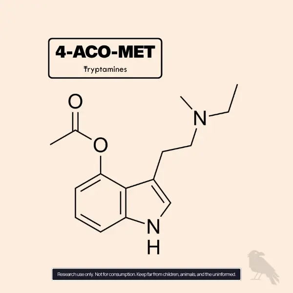 4-AcO-MET is a rare acetoxy analogue of psilocin, a soft-spoken member of the methoxy tryptamine family known for its elegant molecular rhythm. It’s part of that lineage that carries the same spark but dances to its own research tempo. Think of 4-AcO-MET as the echo that learned to sing, soft, luminous, unmistakably its own.